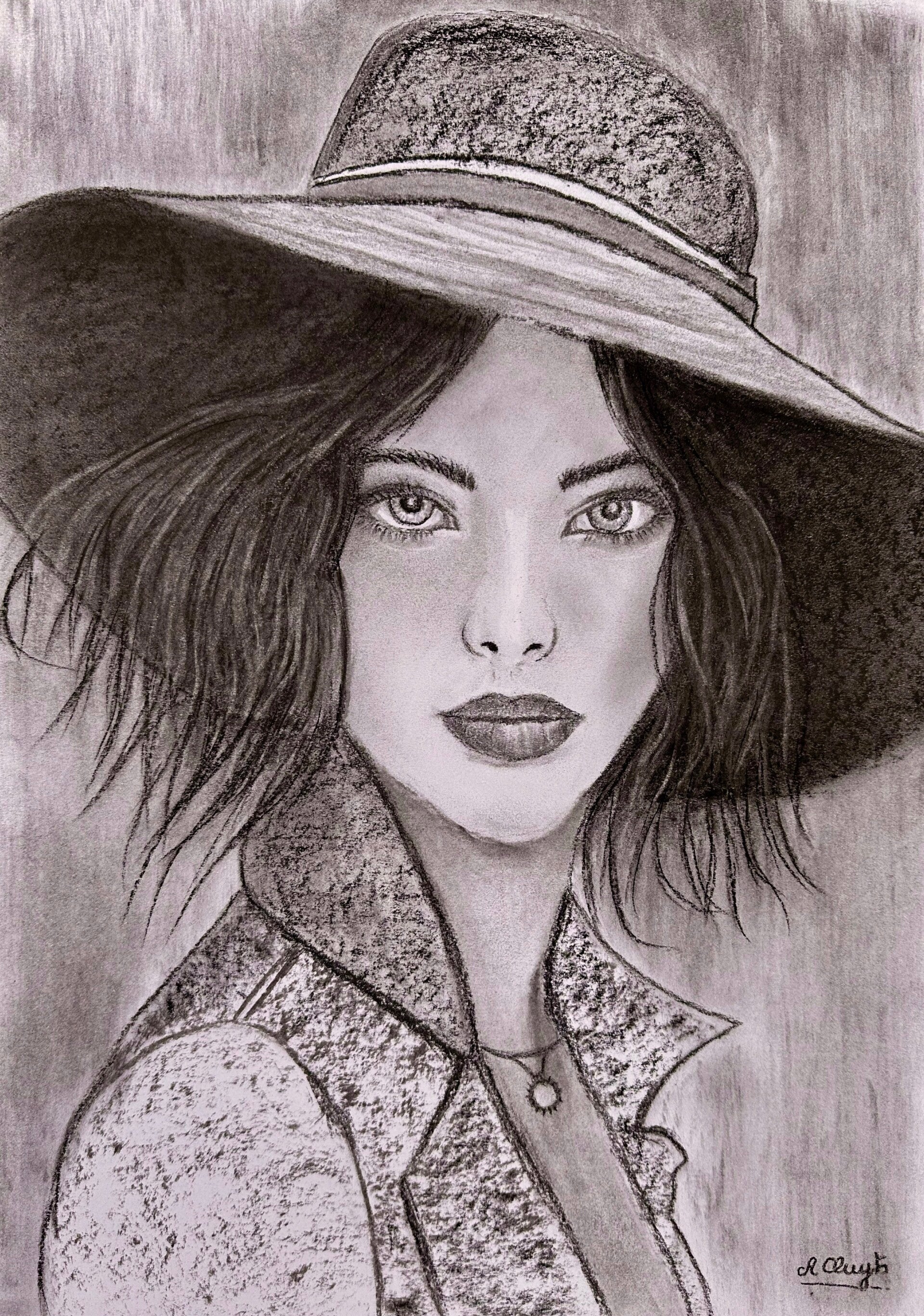 Deze prachtige tekening toont een vrouw die elegant een hoed draagt, wat haar een verfijnde uitstraling geeft. De hoed, met zijn delicate lijnen en schaduw, accentueert haar gezicht en voegt een vleugje mysterie toe aan haar karakter. Ik heb met veel aandacht voor detail gewerkt, waardoor de textuur van de hoed en de gelaatsuitdrukkingen van de vrouw tot leven komen. De achtergrond is subtiel en zorgt ervoor dat de focus volledig op de vrouw en haar hoed ligt. Dit kunstwerk is perfect voor iedereen die houdt van mode, kunst of gewoon een mooie afbeelding wil toevoegen aan hun interieur. Het is een geweldige aanvulling voor in de woonkamer, slaapkamer of zelfs een kantoorruimte, waar het een gevoel van stijl en elegantie kan uitstralen.