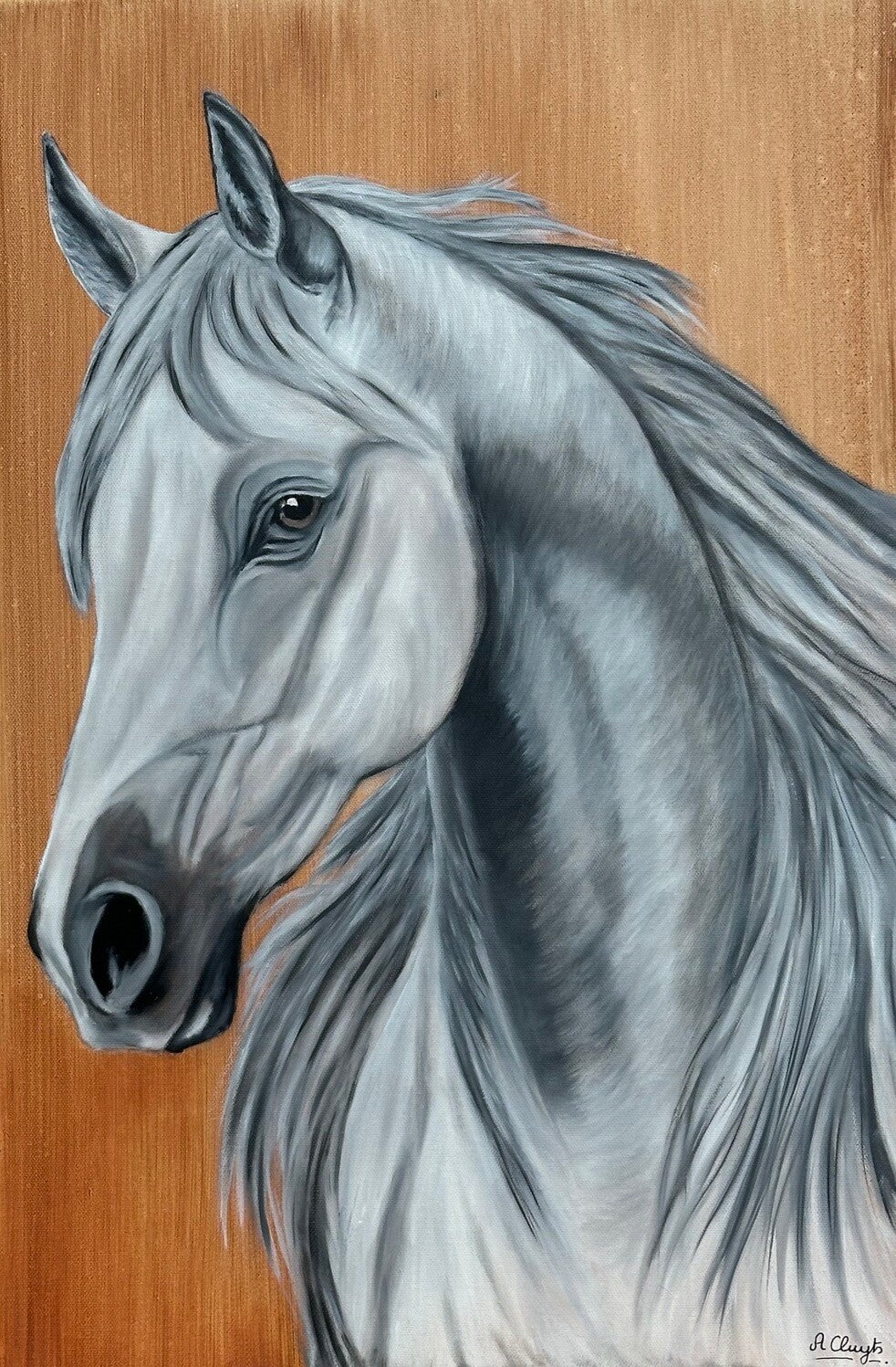 Laat je betoveren door deze prachtige schilderij van een witte paard met lange, golvende manen. Dit kunstwerk straalt elegantie en kracht uit, perfect voor elke ruimte in je huis. De subtiele details en de levendige kleuren brengen de schoonheid van de natuur tot leven, waardoor het een ideale aanvulling is voor je interieur. Voeg een vleugje verfijning toe aan je decor en laat dit schilderij een gespreksonderwerp worden voor al je gasten!